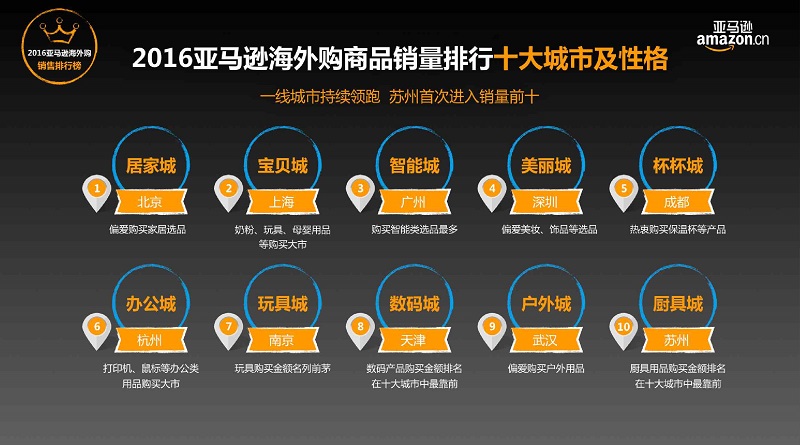 報告基于對亞馬遜海外購海量數(shù)據(jù)的深入解析以及消費者行為調(diào)查,總結(jié)出中國跨境網(wǎng)購消費的四大特征與趨勢,即跨境網(wǎng)購愈發(fā)普及并常態(tài)化、跨境網(wǎng)購人群年輕化、跨境網(wǎng)購更趨品質(zhì)化和免費跨境配送釋放消費潛力。從地域分布來看,一線城市依然是領(lǐng)頭羊,且以南方城市為主。服裝、鞋靴是最受中國消費者歡迎的兩大品類。最受中國消費者歡迎的品牌為Calvin Klein。(美通社,2017年1月10日北京)