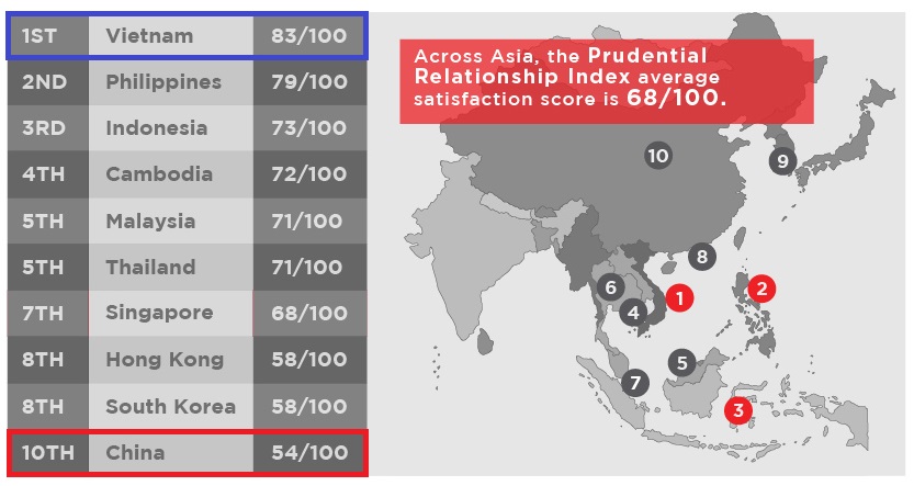 保誠保險公布的2016年保誠人際關系指數(shù)顯示,亞洲人對人際關系的總體滿意度較高,為68%。亞洲十個國家和地區(qū)中,越南受訪者對人際關系的滿意度最高,為83分,其次分別是菲律賓和印度尼西亞。中國得分最低,僅54分。另外,人們最容易因金錢、孩子以及缺乏關注等問題產(chǎn)生爭執(zhí)。(美通社,2017年2月9日香港)