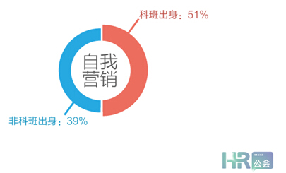 來看看科班與非科班出身的HR在這方面有什么差異。調研結果顯示,51%科班出身的HR更注重自我營銷類文章,而非科班出身選擇這一項的只有39%。