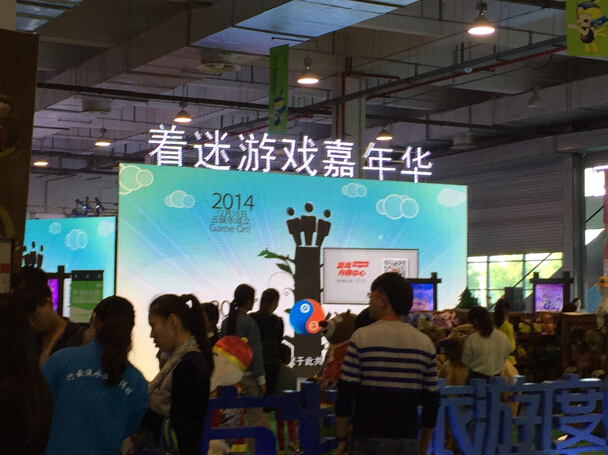 在本次博覽會期間,著迷展區(qū)以360度全方位液晶屏組成,全天候播放著迷制作的精品游戲視頻。