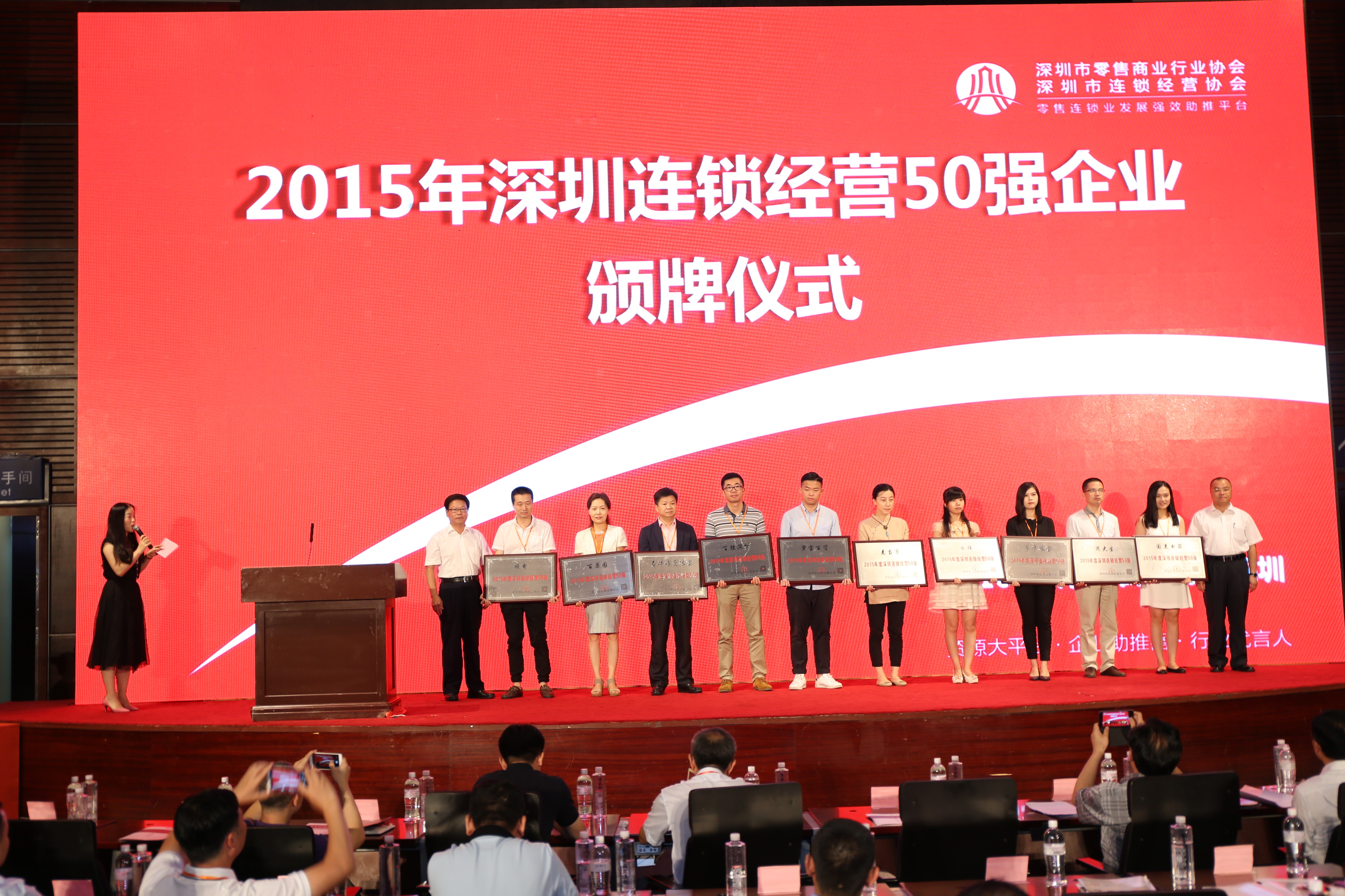 現(xiàn)場為2015年度深圳連鎖經(jīng)營50強企業(yè)頒牌