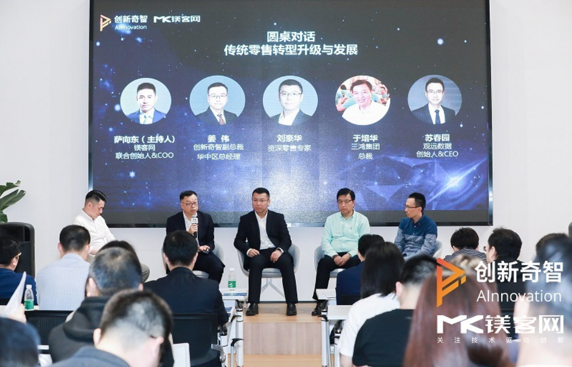 在主題為“傳統(tǒng)零售轉(zhuǎn)型升級(jí)與發(fā)展”的圓桌中,創(chuàng)新奇智副總裁、華中區(qū)總經(jīng)理姜偉,資深零售專家劉豪華,三鴻集團(tuán)總裁于培華,觀遠(yuǎn)數(shù)據(jù)創(chuàng)始人&CEO蘇春園就零售行業(yè)的一些關(guān)鍵議題進(jìn)行了熱烈的探討。