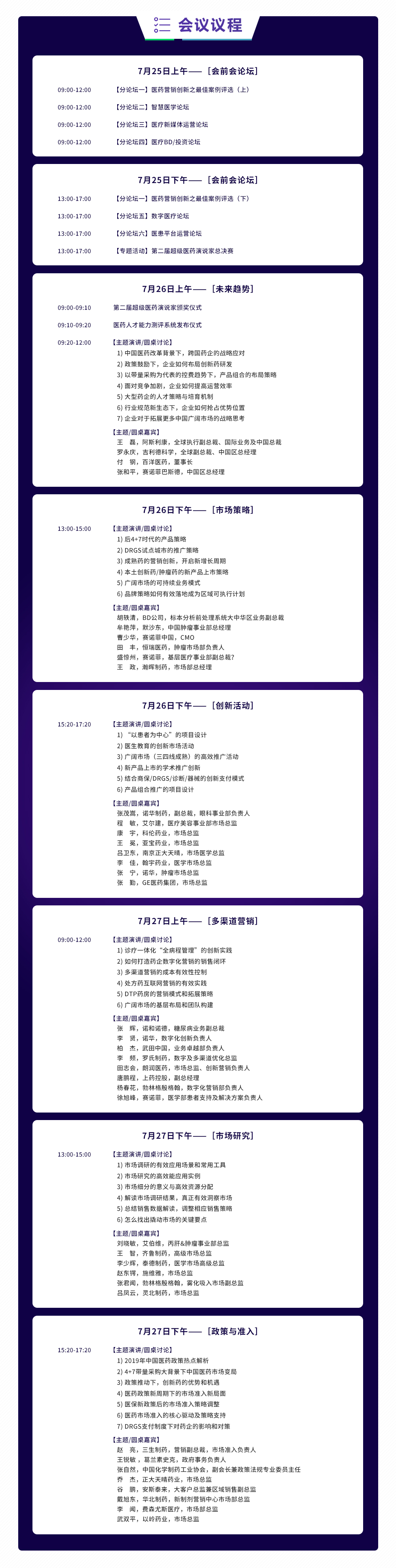 思齊將在7月低于上海召開(kāi)2019醫(yī)療市場(chǎng)年會(huì)(第四屆),持續(xù)三天貢獻(xiàn)近百個(gè)主題內(nèi)容,兩天主會(huì)場(chǎng)包含了趨勢(shì)解讀、市場(chǎng)策略、創(chuàng)新活動(dòng)、多渠道營(yíng)銷(xiāo)、市場(chǎng)研究、政策與準(zhǔn)入等六大板塊,會(huì)前四大分會(huì)場(chǎng)設(shè)置了營(yíng)銷(xiāo)案例評(píng)選、智慧醫(yī)學(xué)、新媒體運(yùn)營(yíng)、BD/投資、數(shù)字醫(yī)療、醫(yī)患平臺(tái)、醫(yī)藥演說(shuō)家等七個(gè)論壇,以主題演講、圓桌分享、案例討論等形式聚焦“聚力賦能,洞見(jiàn)未來(lái)”!屆時(shí)將有100+頂級(jí)內(nèi)外資藥企高管,一起為各位行業(yè)人士分享交流。