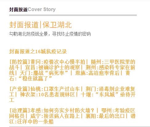 財(cái)新報(bào)道《保衛(wèi)湖北》