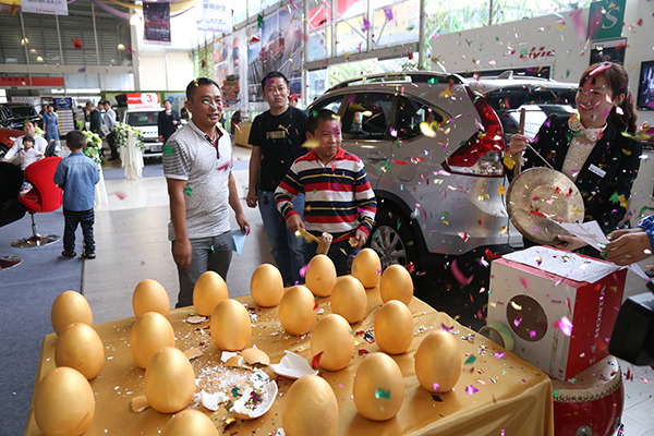 在此次活動中,實田4S店為所有成功購車的顧客準備了砸金蛋活動,只要是報名參與本次活動并成功購車的的網(wǎng)友均能從活動中收獲各種精美的禮品,到場顧客參與程度異?;鸨?。