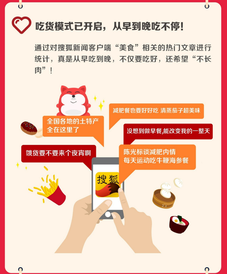 搜狐新聞客戶端將視角圍繞著用戶生活的方方面面,既有面向出行人群的“旅游大數(shù)據(jù)報告”,同時也聯(lián)手百度外賣,發(fā)布了面向“吃貨”的“外賣大數(shù)據(jù)”。