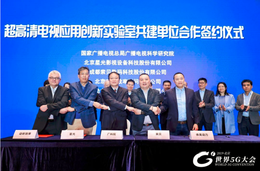 2019年11月22日上午,在世界5G大會“5G+超高清視頻高峰論壇”現(xiàn)場,國家廣播電視總局廣播電視科學(xué)研究院、北京市廣播電視局作為牽頭單位,分別與中國傳媒大學(xué)、北京體育大學(xué)、新奧特(北京)視頻技術(shù)有限公司、北京中科大洋科技發(fā)展股份有限公司、上海海思技術(shù)有限公司、北京星光影視設(shè)備科技股份有限公司、成都索貝數(shù)碼科技股份有限公司、北京動聽效率顧問有限公司、體奧動力(北京)體育傳播有限公司簽署了“超高清電視應(yīng)用創(chuàng)新實驗室”共建協(xié)議。
