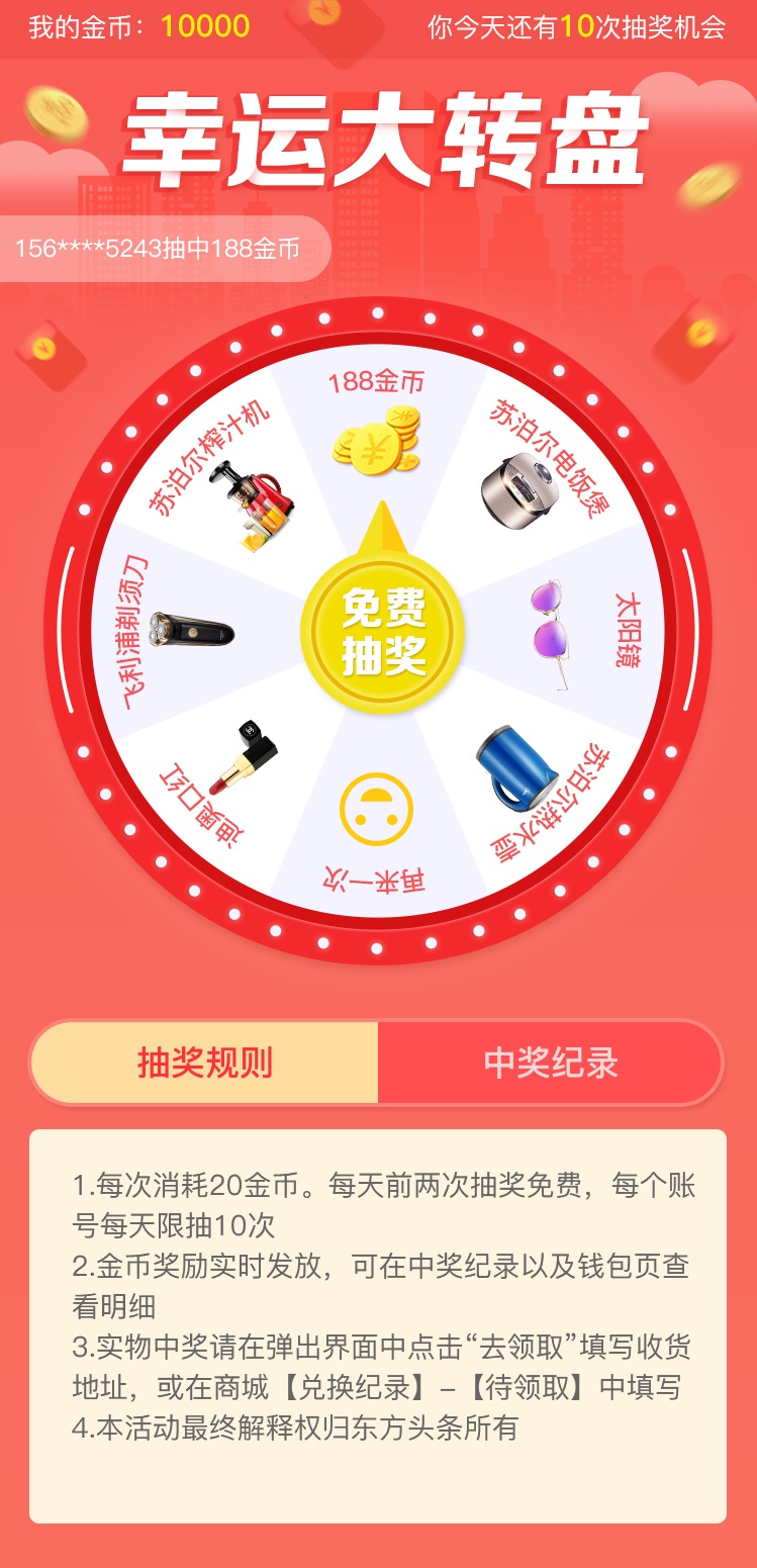用戶在東方頭條平臺,通過閱讀、評論、分享內(nèi)容或邀請好友獲取的金幣,均可參與“幸運(yùn)大轉(zhuǎn)盤”抽獎活動,每消耗20枚金幣可兌換一次抽獎機(jī)會,月餅禮盒、陽澄湖大閘蟹及干紅葡萄酒等好禮繽紛上場。