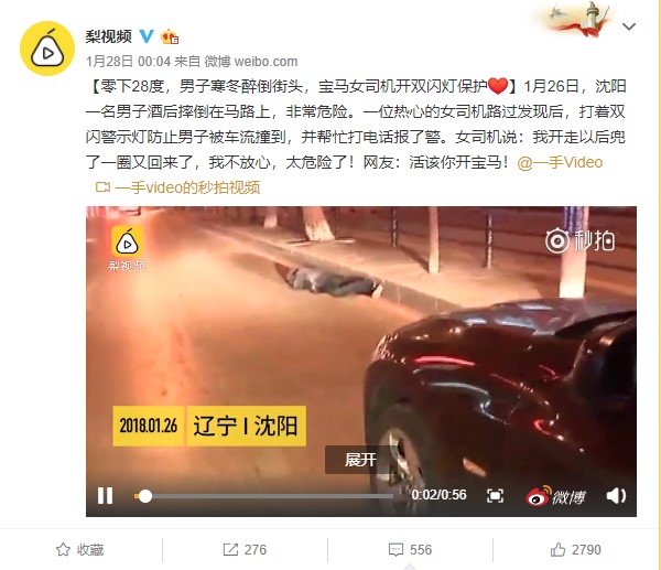 零下28度,男子寒冬醉倒街頭,寶馬女司機開雙閃燈保護(梨視頻)