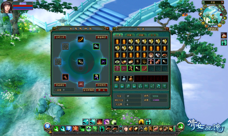 如意乾坤袋的好處還在于隨身攜帶,任何時(shí)間都能使用,無(wú)需到 NPC 那里合成。相比《暗黑破壞神2》,《倩女幽魂 Online》的如意乾坤袋無(wú)需占用包裹,直接成為包裹界面的功能?!顿慌幕闛nline》的主策劃還提到一個(gè)新的綠色概念:為了防止玩家合成失敗帶來(lái)過(guò)多的挫折感,《倩女幽魂 Online》還增加了人品值的設(shè)計(jì)。玩家如果合成失敗,人品值就會(huì)增加,合成成功率就會(huì)大大增加,玩家們不再為概率傷心欲絕。同時(shí),合成還受幸運(yùn)值的影響,也就是類似《暗黑破壞神2》的 MF(Magic Find)值,使乾坤袋的可玩性大大增加,這類的幸運(yùn)值累加也可以通過(guò)野外刷裝備而得到,再也不是 RMB 玩家的專利,讓極品來(lái)得更加綠色和平衡。