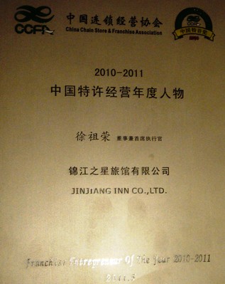 10月,“錦江之星”被中國飯店協(xié)會評為“中國優(yōu)秀綠色飯店”,錦江之星旅館有限公司被評為“2010年度中國飯店集團(管理公司)十佳品牌企業(yè)”;