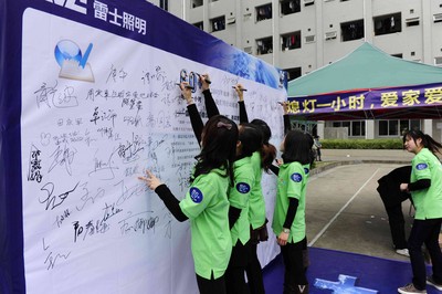 雷士照明作為中國(guó)節(jié)能照明的品牌企業(yè),是低碳經(jīng)濟(jì)的倡導(dǎo)者,一直非常重綠色環(huán)保事業(yè),雷士所生產(chǎn)的照明燈具主要是節(jié)能燈、LED 等綠色節(jié)能照明產(chǎn)品。這是雷士照明連續(xù)第二年大力開(kāi)展“地球熄燈一小時(shí)”活動(dòng),目的是為了加深大家對(duì)節(jié)能環(huán)保、低碳生活的認(rèn)識(shí)和了解,這一行動(dòng)正好切合雷士照明一直推行節(jié)能環(huán)保、倡導(dǎo)綠色照明的理念。除了在惠州雷士工業(yè)園,雷士還向位于上海、重慶、山東、浙江等全國(guó)雷士生產(chǎn)基地、運(yùn)營(yíng)中心及經(jīng)銷(xiāo)商發(fā)出低碳倡議書(shū),要求同步開(kāi)展“地球一小時(shí)”活動(dòng)。