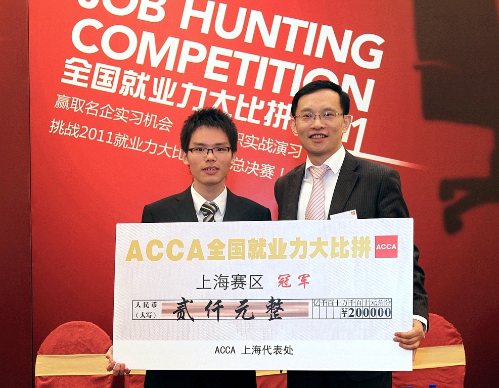 上海2011年5月25日電 /美通社亞洲/ -- 由 ACCA(特許公認(rèn)會計師公會)主辦的“ACCA 就業(yè)力大比拼”上海賽區(qū)決賽近日落下帷幕。來自復(fù)旦大學(xué)、上海交通大學(xué)、上海財經(jīng)大學(xué)、浙江大學(xué)等高校的20名大學(xué)生從華東1300位報名者中脫穎而出進(jìn)入決賽,爭奪名企公認(rèn)的“最具就業(yè)競爭力選手”的殊榮。最終,復(fù)旦大學(xué)的牟竹云、華東師范大學(xué)的侯詒洋和上海財經(jīng)大學(xué)的胡雪燕分獲冠亞季軍。這三名選手將參加今年6月在廣州舉行的全國總決賽。