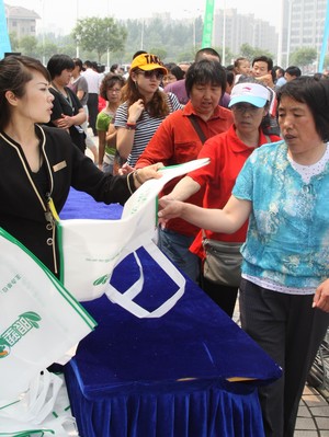 自“限塑令”執(zhí)行以來,沃爾瑪全國門店數(shù)量增加了兩倍多,但塑料袋使用總量卻僅約為原來的十分之一,取得了顯著的效果,為環(huán)境保護(hù)做出了積極的貢獻(xiàn)?;顒蝇F(xiàn)場,沃爾瑪派發(fā)了印有“減塑”相關(guān)主題宣傳資料的全降解環(huán)保袋,受到顧客的歡迎。