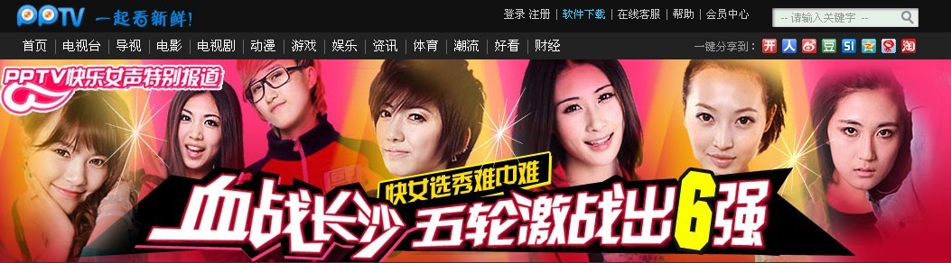 這個夏天 PPTV 網(wǎng)絡(luò)電視將通過及時最新的專題盤點以及即將開始的全天候快女真人秀將與湖南衛(wèi)視、天娛傳媒一同打造一個獨具效應(yīng)的真人秀平臺??梢韵胍?,伴隨著長達70天時間的快女13強 PK 戰(zhàn),全天候反映著70天生活的2011快女真人秀節(jié)目將會開創(chuàng)業(yè)界迄今較大規(guī)模的臺網(wǎng)互動先河,其效應(yīng)值得眾人拭目以待。