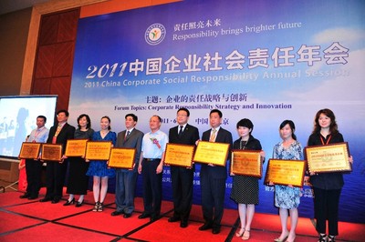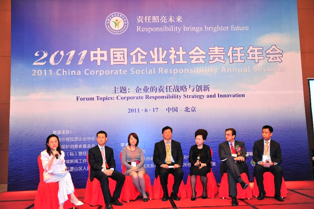 “第三屆企業(yè)社會責任年會”由中國外商投資企業(yè)協(xié)會、中國保護消費者基金會、中國民(私)營經(jīng)濟研究會、中國環(huán)境新聞工作者協(xié)會和北京市石景山區(qū)人民政府聯(lián)合主辦,2011年6月17日在北京舉行。本次年會主題為“企業(yè)的責任戰(zhàn)略與創(chuàng)新”。當天企業(yè)高管、政府官員、專家、國際組織及 NGO、中外主流媒體記者等各界人士匯聚一堂。為提醒全世界的企業(yè)都來重視社會責任、更好的履行社會責任,并號召更多企業(yè)參與其中,經(jīng)與會企業(yè)提議,年會組委會及與會的80家中外知名大公司還倡議從明年起,將每年的6月16日確立為世界“企業(yè)社會責任日”。
