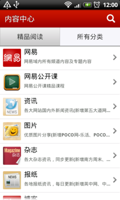 網(wǎng)易閱讀 Android 版本也延續(xù)了 iPad 版本“內(nèi)容為王”、注重品質(zhì)內(nèi)容的特性,擁有包括網(wǎng)易自身130個(gè)特色欄位在內(nèi)的近2000個(gè)多個(gè)互聯(lián)網(wǎng)精品訂閱源,涵蓋了新聞動(dòng)態(tài)、雜志報(bào)刊,精美圖片相冊(cè)、熱門(mén)論壇博客、網(wǎng)易公開(kāi)課等等各種炫目精彩的內(nèi)容,在手機(jī)端真正實(shí)現(xiàn)了“視聽(tīng)一體化”。此外,網(wǎng)易閱讀有經(jīng)營(yíng)門(mén)戶經(jīng)驗(yàn)的內(nèi)容團(tuán)隊(duì),精挑細(xì)選、貼心推介優(yōu)質(zhì)內(nèi)容,保障了用戶移動(dòng)閱讀的深度和質(zhì)量。