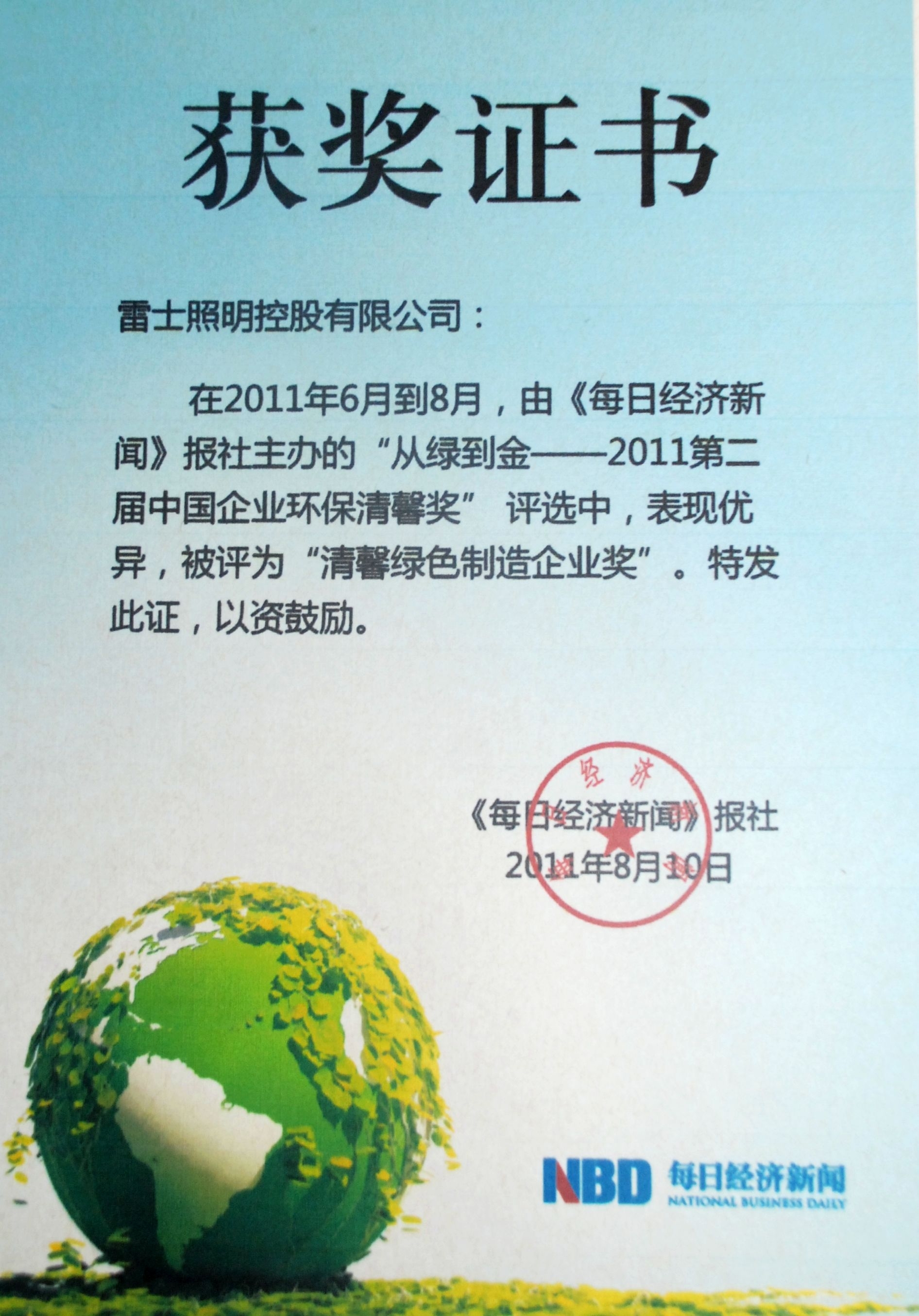 當前,能源和環(huán)境危機是全世界共同面對的課題,而照明節(jié)能是非常重要的部分,據(jù)統(tǒng)計,照明消耗中國總發(fā)電量達到13%。發(fā)展綠色照明、低碳經(jīng)濟成為政府和社會共同努力的發(fā)展方向。雷士照明此次榮獲中國企業(yè)環(huán)保清馨獎,這是主辦方對雷士照明在發(fā)展綠色照明、推廣節(jié)能環(huán)保產(chǎn)業(yè)所貢獻的肯定。