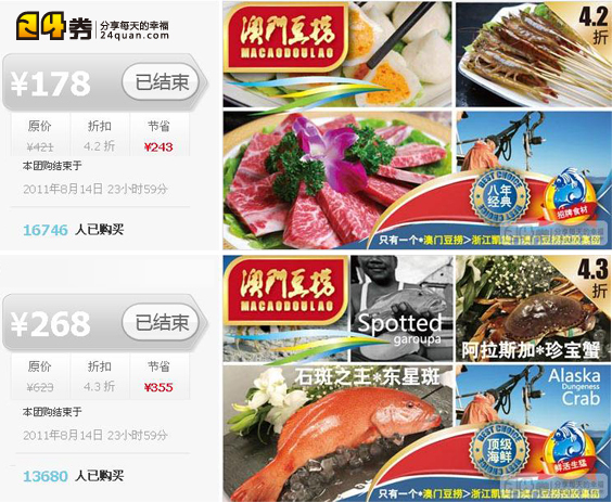 北京2011年8月18日電 /美通社亞洲/ -- 8月17日,知名連鎖餐飲“澳門豆撈”品牌創(chuàng)始人-- 浙江凱旋門澳門豆撈控股集團(tuán)與24券團(tuán)購網(wǎng),在杭州聯(lián)合召開新聞發(fā)布會(huì),正式宣布雙方首次合作推廣的“史上最幸福海鮮盛宴”突破30000單,并于8月18日-20日再次上線,全國精選130余家正宗直營門店參團(tuán),以滿足消費(fèi)者史上呼聲較高的“再開團(tuán)”需求。