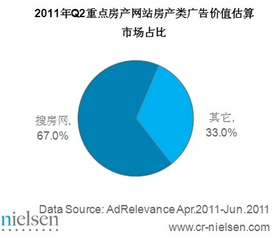 搜房網(wǎng)2011年 Q3房產(chǎn)類廣告價(jià)值估算高達(dá)2.79億元,占行業(yè)整體的62.5%,遠(yuǎn)超其他競爭對(duì)手。