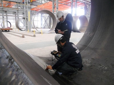 該項(xiàng)目鋼構(gòu)基礎(chǔ)共計(jì)36套,包括15套華銳單管樁和21套西門子五管樁鋼構(gòu)基礎(chǔ)。其中單管樁為國(guó)內(nèi)第一根海上風(fēng)力發(fā)電機(jī)組單管樁,標(biāo)志著我國(guó)海上風(fēng)電工程施工工藝有了新的突破?!昂I巷L(fēng)電樁管基礎(chǔ)成本高,防腐要求高,需要較高的可靠性。我們的工程師通過(guò)駐廠監(jiān)造,依照相關(guān)標(biāo)準(zhǔn)及技術(shù)規(guī)范,可以幫助客戶控制五管樁/單管樁產(chǎn)品質(zhì)量。”必維相關(guān)負(fù)責(zé)人如是說(shuō)。