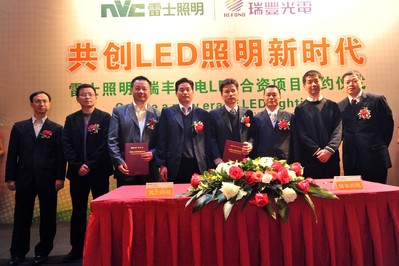 惠州2012年1月16日電 /美通社亞洲/ -- 中國照明行業(yè)龍頭企業(yè) -- 雷士照明(香港主板上市代號:2222.HK)與中國領先的LED封裝企業(yè) -- 瑞豐光電(全稱“深圳市瑞豐光電子股份有限公司”,股票代碼:300241.SZ)在廣東惠州隆重舉行“共創(chuàng) LED 照明新時代 -- 雷士照明·瑞豐光電LED合資項目簽約啟動儀式暨新聞發(fā)布會”。根據1月11日雙方簽署的合作框架性協(xié)議書顯示,雷士照明與瑞豐光電將共同出資投建LED項目,主要從事LED封裝技術研發(fā)和LED封裝產品制造、銷售等。該項目將建立3000平米的專業(yè)化潔凈廠房,引進國內外先進生產設備,建設國內一流LED照明器件/模組生產基地,生產基地預計在2012年4月底正式開工投產。