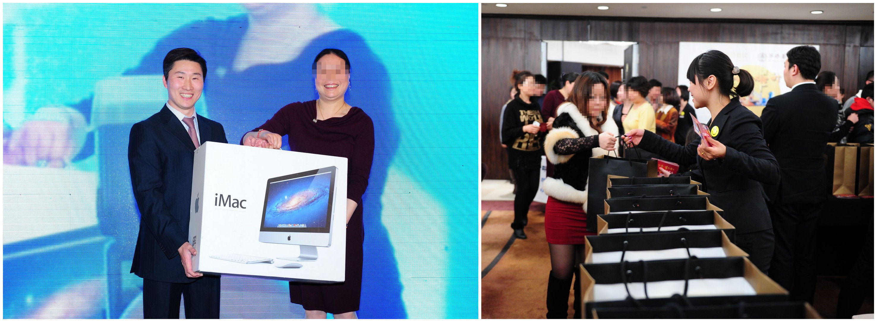 華僑移民為尊貴客戶準備豐富禮品,高端定制紅酒水晶杯、為登陸準備的定制漢王電紙書以及特別為抽獎助興準備的從價值兩千元的 ipod touch、價值五千元的 iphone 4s、價值一萬元的 macbook air 到價值一萬五千元的蘋果一體機……一切都是為了表達華僑公司對客戶們的感恩。