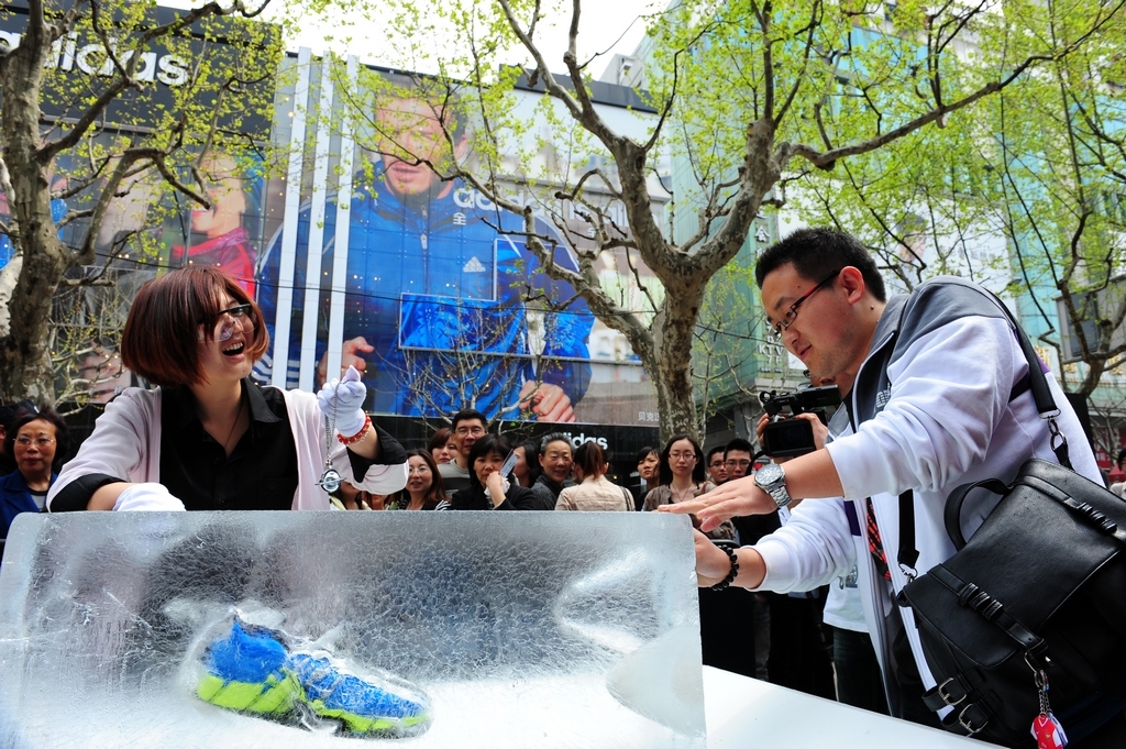 上海和北京2012年4月16日電 /美通社亞洲/ -- 繼奧運拳擊冠軍鄒市明和著名影星姚晨在北京向全國消費者發(fā)出“全傾全力360度透氣酷跑”的邀請后,阿迪達斯全國范圍內(nèi)的100家門店聯(lián)手邀請消費者于4月14和15日前往現(xiàn)場體驗全新ClimaCool清風跑鞋,阿迪達斯在上?;春B芬约氨本┤锿推放浦行母峭瞥隽巳炻费?,讓更多消費者親身參與體驗?;顒咏梃b了姚晨和鄒市明在發(fā)布會上跑步破冰贏鞋的形式,每一位到場者都有機會親身體驗并挑戰(zhàn)破冰環(huán)節(jié)。與此同時,阿迪達斯“奪寶奇冰”手機游戲也全新上線,消費者一邊在真實世界跑步,一邊在線搜集虛擬工具進行破冰,即可收獲最新清風跑鞋。