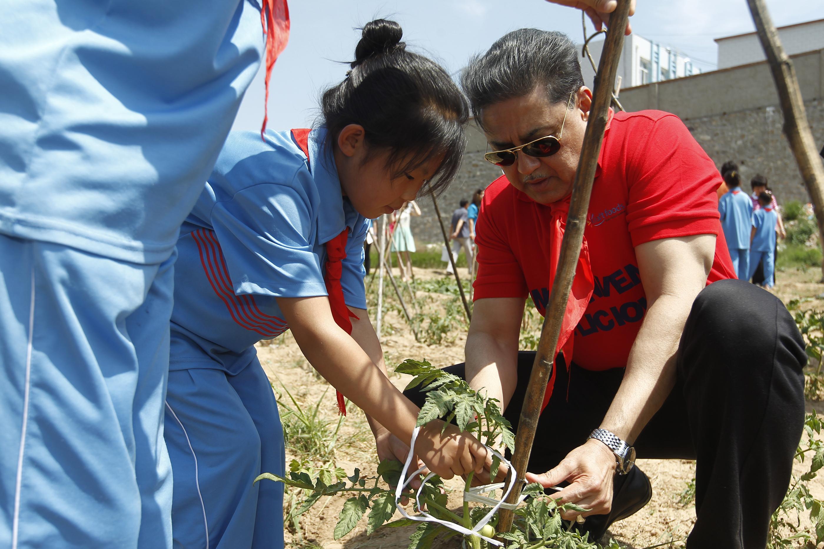 懷來縣孫莊子村距離首都北京僅2小時(shí)車程,在福和希望寄宿學(xué)校大多數(shù)的學(xué)生來自貧困家庭,學(xué)校食堂的供餐能力對(duì)學(xué)生健康成長(zhǎng)尤為關(guān)鍵??ǚ蚴称分驹刚叽诵谢卦L了該??ǚ蛳M麖N房的情況,聽取校方對(duì)項(xiàng)目的改進(jìn)建議,和學(xué)校師生一起在新建的“美味菜園”中搭架、澆水,在“卡夫希望廚房”親自為孩子們包餃子準(zhǔn)備午飯。