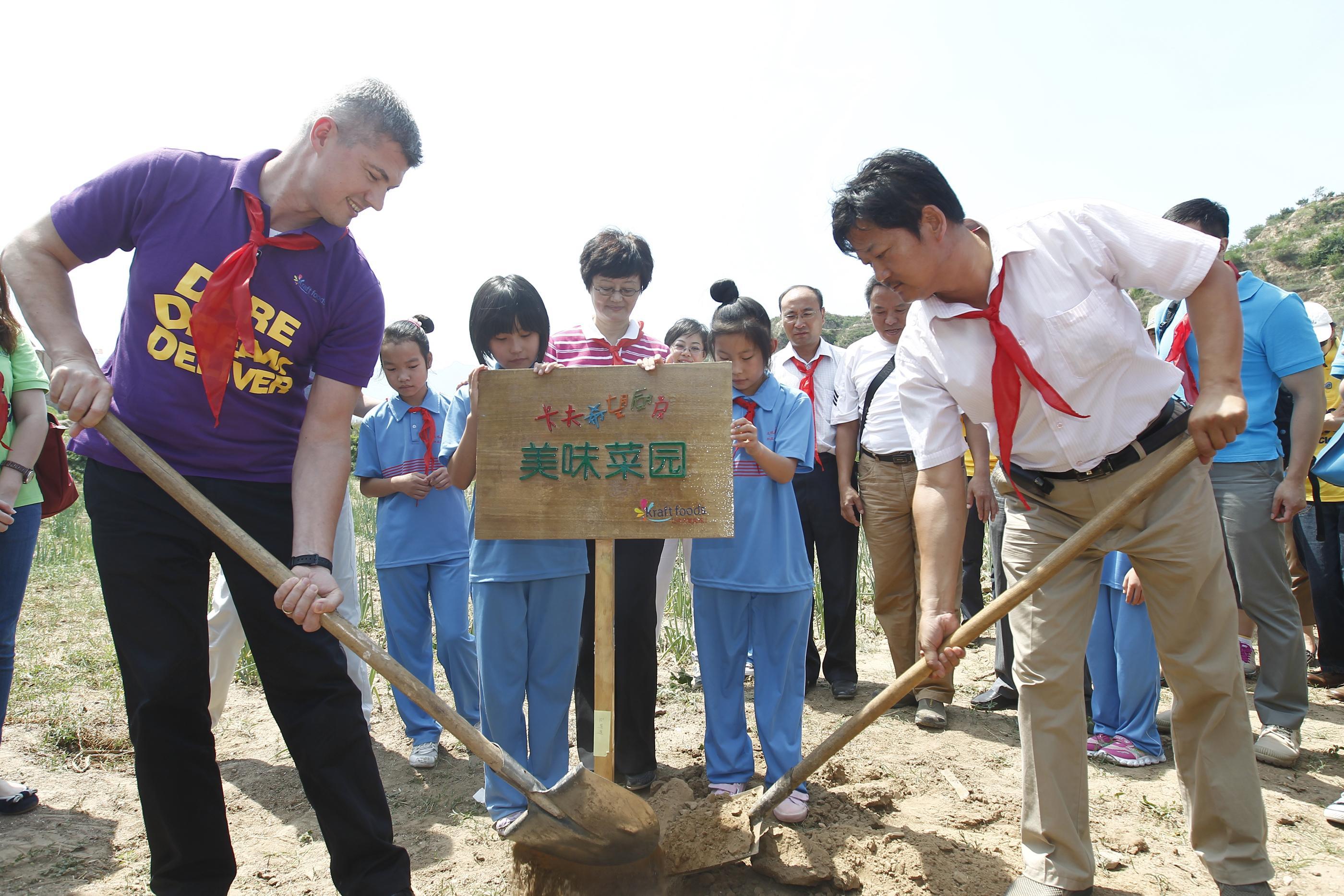 2011年8月,“卡夫希望廚房”在孫莊子中心福和希望寄宿學(xué)校投入使用,讓該校近400名學(xué)生吃上了衛(wèi)生、營(yíng)養(yǎng)的熱飯菜。今天,卡夫食品的志愿者回訪該校,并開辟了“卡夫希望廚房美味菜園”??ǚ蚴称分袊?guó)總裁肖恩·沃倫(Shawn Warren)說到,“看到‘卡夫希望廚房’給孩子們膳食營(yíng)養(yǎng)帶來的改變,我們感到十分欣慰?!牢恫藞@’完全建成之后,可以滿足學(xué)校400名學(xué)生近50%的蔬菜和肉類的需求。同時(shí)我們希望,孩子們通過在菜園中上勞動(dòng)課,可以體會(huì)到勞動(dòng)的快樂,通過自己的雙手創(chuàng)造美味。更令人興奮的是,在張家口地區(qū)還將有8所‘卡夫希望廚房’在今年秋季開學(xué)前建成并投入使用,又將有1700多名小學(xué)生也能吃上衛(wèi)生營(yíng)養(yǎng)的熱飯菜?!?/p>