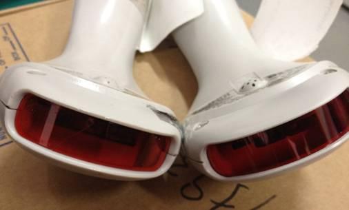3. 仿冒的按鈕部分從里看是白色的,正常應(yīng)該是灰/黑色的。
