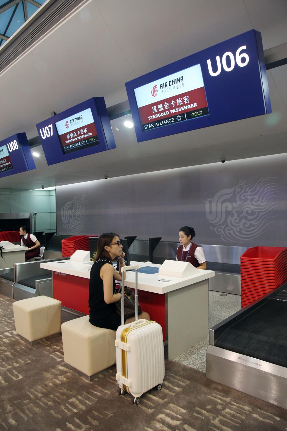 在成都雙流國(guó)際機(jī)場(chǎng)二號(hào)航站樓,國(guó)航可利用的專屬資源有了大幅提升,最明顯的是專屬值機(jī)柜臺(tái)由23個(gè)增長(zhǎng)至60個(gè),值機(jī)柜臺(tái)的增加將有效減少旅客排隊(duì)等候的現(xiàn)象,緩解客流高峰,改善旅客的出行體驗(yàn)。二號(hào)航站樓一共設(shè)置了28條安檢通道,其中16條是面向國(guó)航旅客的專屬通道,安檢通道數(shù)量的增加將有效地緩解高峰期旅客安檢排隊(duì)的情況,節(jié)省旅客的等候時(shí)間。同時(shí),16條國(guó)航專屬安檢通道距離值機(jī)島和停機(jī)位的距離都非常短,旅客們?cè)谵k理完乘機(jī)手續(xù)之后只需步行很短的距離便可到達(dá)安檢通道,而通過安檢后,更可直接面對(duì)近機(jī)位登機(jī)口,即便是遠(yuǎn)機(jī)位也遠(yuǎn)比一號(hào)航站樓近得多,免去了旅客在乘機(jī)過程中長(zhǎng)途步行的麻煩。
