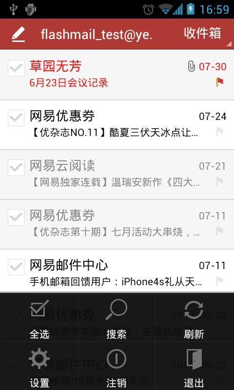網(wǎng)易郵箱Android客戶端本地操作數(shù)據(jù)即時(shí)同步網(wǎng)頁郵箱,在郵箱上已經(jīng)閱讀的郵件,webmail同步為已讀狀態(tài),此外無論是刪除、移動(dòng)還是標(biāo)記紅旗郵件等操作,任何時(shí)候都只需管理其中一個(gè)終端,其他終端即可實(shí)現(xiàn)同步。