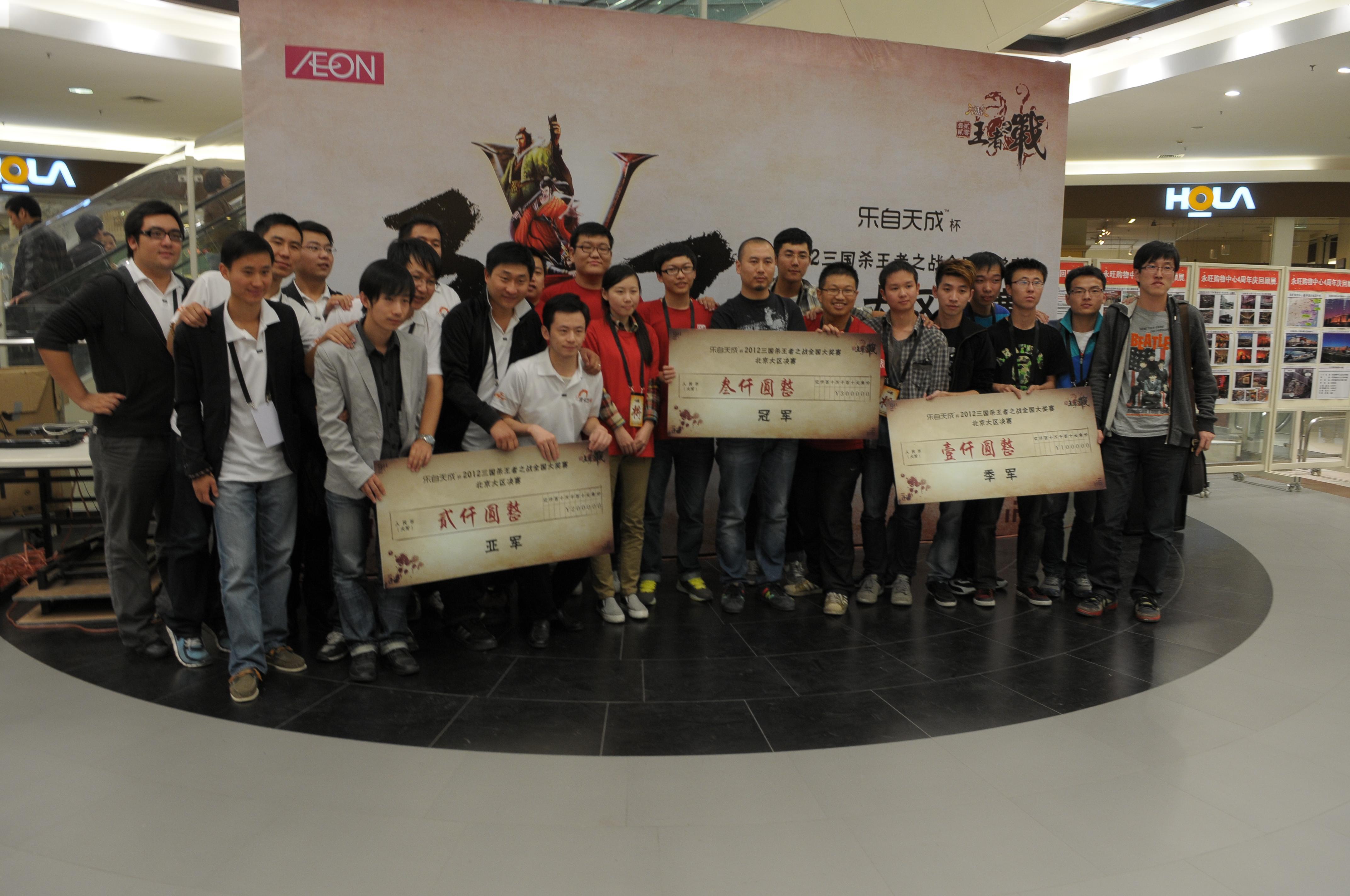 經(jīng)過兩天的浴血奮戰(zhàn),10支戰(zhàn)隊終于脫穎而出,其中殤龍逐鹿,皮卡丘—臺臺,游夢青春三支戰(zhàn)隊,分別獲得冠,亞,季軍,并贏得了相應(yīng)的3000元,2000元,1000元的現(xiàn)金大獎,為比賽畫上了圓滿的句號。頒獎典禮上,商場一層被圍得水泄不通,路過的行人紛紛駐足,更有北京電視臺和中國教育電視臺趕赴現(xiàn)場報道,一同目睹三國殺高手的風(fēng)采。