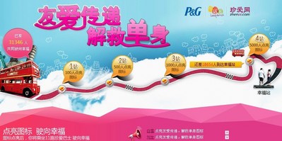 深圳2012年11月14日電 /美通社/ -- 不知不覺光棍節(jié)已經(jīng)成為各大品牌爭(zhēng)相搶灘的一個(gè)大型狂歡,今年打著“末日光棍節(jié)”旗號(hào),搶灘之戰(zhàn)更是愈演愈烈。中國(guó)較大的相親網(wǎng)站珍愛網(wǎng)率先與寶潔以及國(guó)內(nèi)各大電商網(wǎng)站(天貓、京東商城、亞馬遜、一號(hào)店、蘇寧易購(gòu)、繽購(gòu)網(wǎng)、當(dāng)當(dāng)網(wǎng))聯(lián)手,打造一場(chǎng)光棍節(jié)較強(qiáng)跨界營(yíng)銷,以別出心裁的主題角度吸引了近10萬(wàn)網(wǎng)友共同參與。