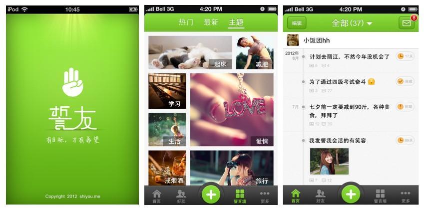 《誓友》最初的創(chuàng)意源于人們?cè)诂F(xiàn)實(shí)生活中經(jīng)常發(fā)生的“發(fā)誓“,這一表達(dá)個(gè)人情感和建立目標(biāo)的有趣方式。有很多人喜歡發(fā)誓,但誓言往往落空,這是因?yàn)槿狈ψ罱K成功的秘籍。移動(dòng)互聯(lián)網(wǎng)迅速發(fā)展的今天,人人都有手機(jī),《誓友》的誕生希望能夠幫助用戶實(shí)現(xiàn)他們的誓言,所謂生活有目標(biāo)就有希望。從意義上來(lái)講,這也是之前移動(dòng)應(yīng)用領(lǐng)域中所沒(méi)有的。