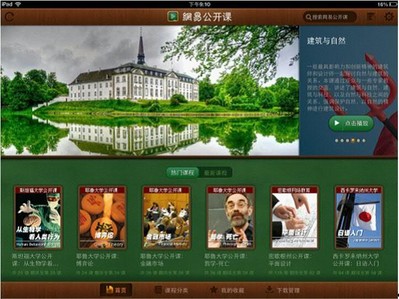 網(wǎng)易公開課是網(wǎng)易于2010年推出的公益項目,旨在為中國用戶帶來優(yōu)質(zhì)的教育資源。網(wǎng)易公開課將國內(nèi)外優(yōu)秀的大學(xué)、論壇的課程和演講,翻譯或制作后免費提供給用戶觀看。截止至2012年12月,網(wǎng)易公開課擁有國際名校公開課、中國大學(xué)視頻公開課、TED、可汗學(xué)院四大類別共約9000集課程,有擁有iPhone、iPad、Android手機、Android平板四大移動客戶端。2011年,網(wǎng)易公開課率先引入的TED視頻,便已受到用戶的熱烈歡迎。此次網(wǎng)易公開課與TED進行了更深入的合作,將為中國互網(wǎng)網(wǎng)用戶帶來更多更新的優(yōu)質(zhì)內(nèi)容。