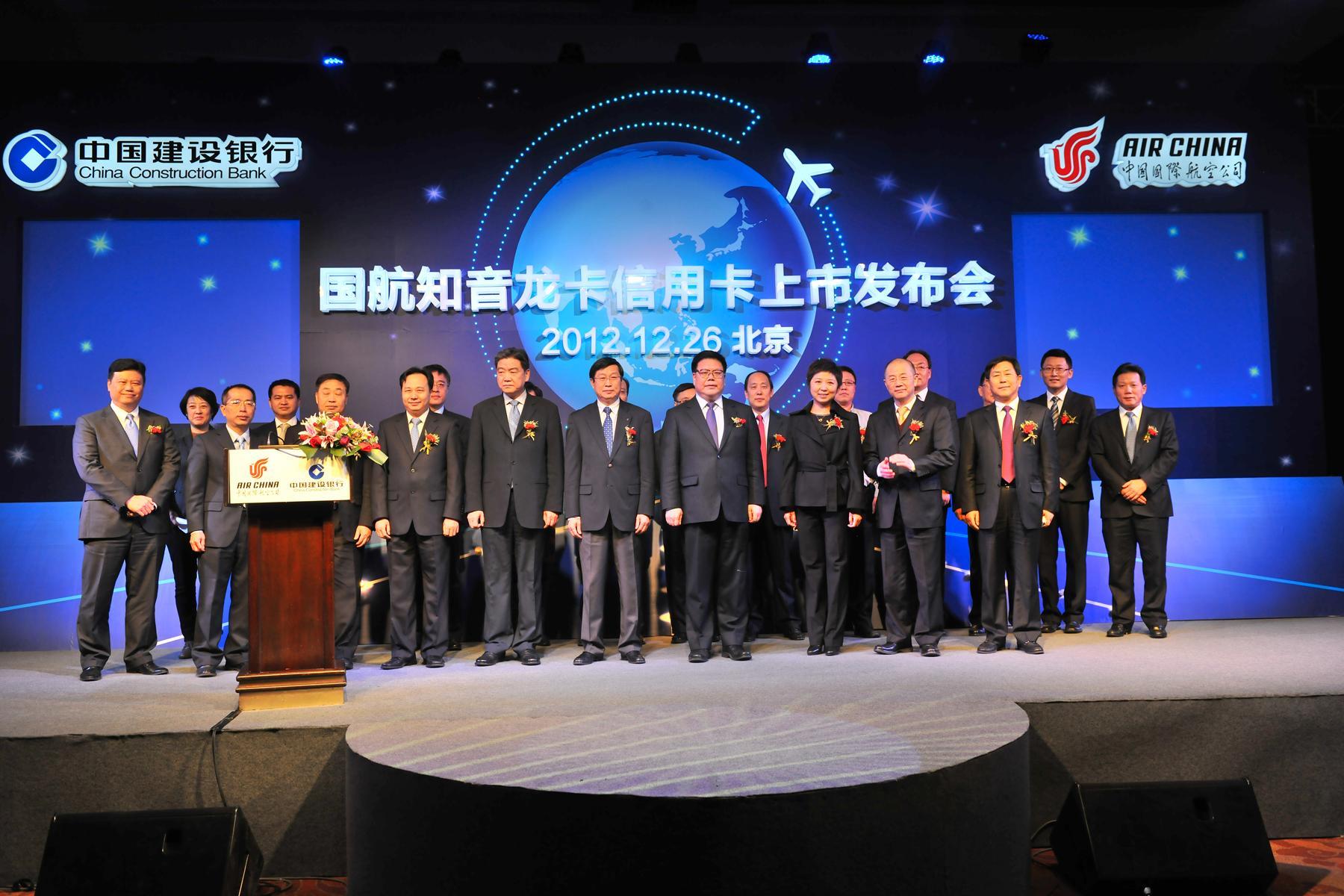 北京2012年12月27日電 /美通社/ -- 中國國際航空股份有限公司(以下簡稱“國航”)與中國建設(shè)銀行(以下簡稱“建行”)于2012年12月26日實現(xiàn)了雙方的跨界合作,以聯(lián)名方式合作發(fā)行“國航知音龍卡信用卡”(以下簡稱“國航龍卡”)。國航龍卡同時具有建行信用卡、國航知音卡的所有基本功能,持卡人可以方便地享受國航與建行提供的各類優(yōu)質(zhì)服務(wù)與產(chǎn)品。中國建設(shè)銀行股份有限公司董事長王洪章、行長張建國,中國國際航空股份有限公司董事長王昌順、黨委書記樊澄等領(lǐng)導蒞臨發(fā)布會現(xiàn)場。