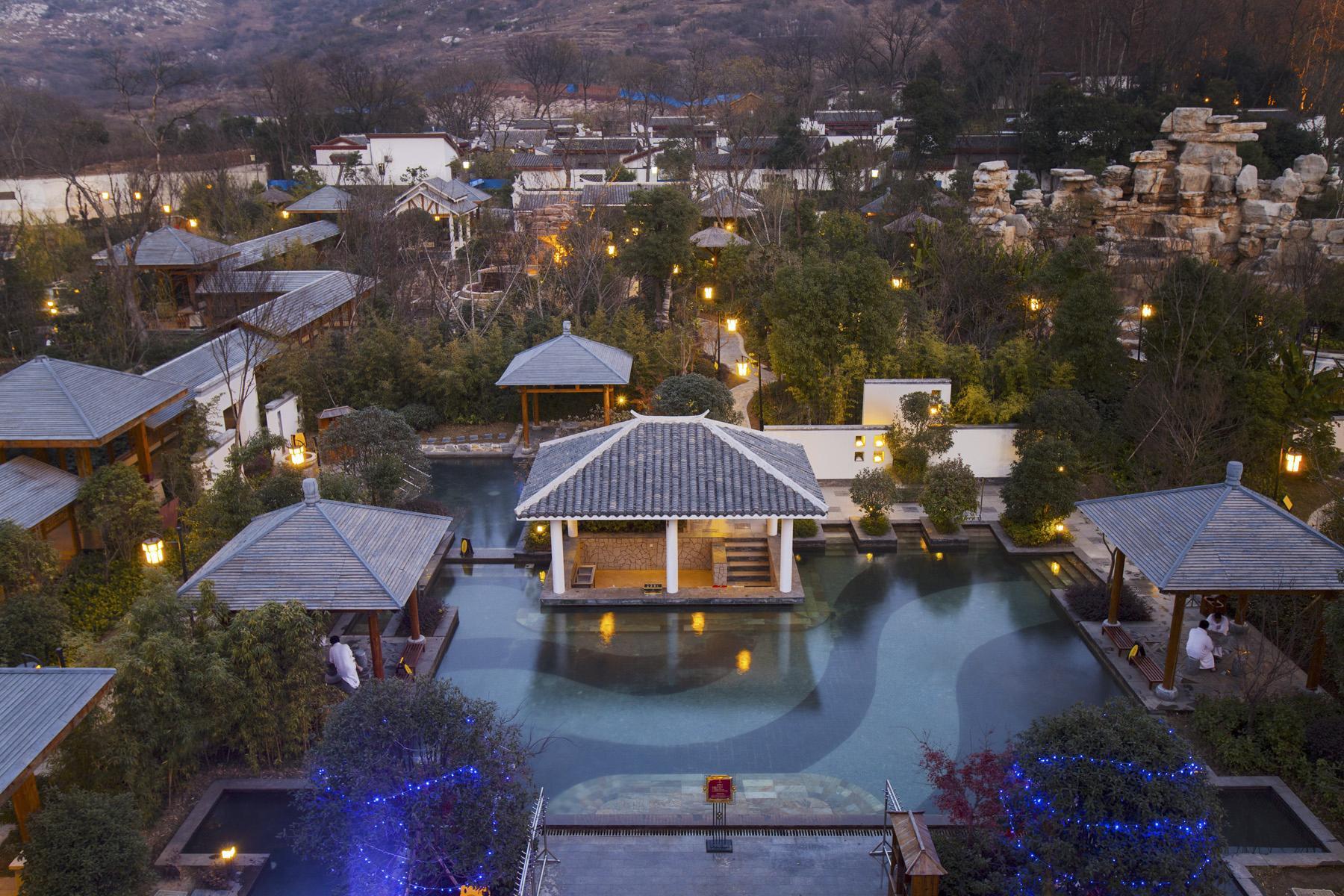 溫泉度假中心占地面積114畝,曲徑通幽、盡顯徽派園林的景致與細膩。溫泉度假中心分室內(nèi)外溫泉區(qū),擁有“瀑、泉、池、藥香園”系列主題區(qū)。大小不同、形態(tài)各異的園林式露天溫泉區(qū),設有溫泉湯屋、綜合休息大廳、影視廳、健身房、棋牌室、保健理療區(qū)、養(yǎng)生泡浴區(qū)等全方位滿足賓客的需求。