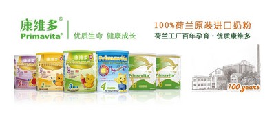 北京2013年1月16日電 /美通社/ -- 康維多(PRIMAVITA)是來自荷蘭的優(yōu)質配方奶粉,關愛寶貝健康成長。自2005年進入中國以來,堅守100%純正荷蘭品質;歐盟嚴格監(jiān)管體系;高標準奶源配以百年高科技生產工藝 ,目前擁有牛奶粉系列、羊奶粉系列和即將上市的特殊配方系列三大系列數(shù)十一款單品,將安全、營養(yǎng)的健康關愛帶進更多中國家庭,呵護寶寶健康成長。