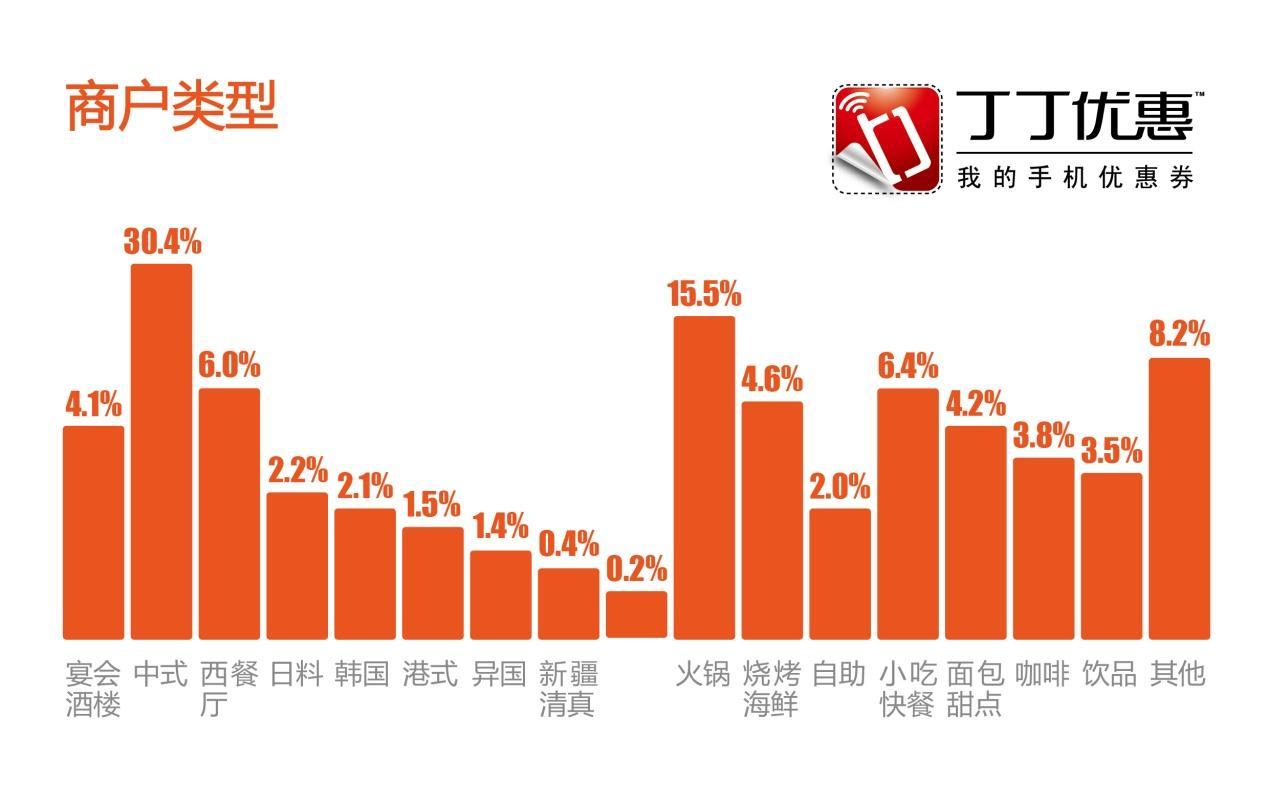 上海2013年1月18日電 /美通社/ -- 近日,國內較大手機優(yōu)惠券 APP 平臺 -- 丁丁優(yōu)惠,發(fā)布《2012年度餐飲商戶調查報告》。調研結果呈現較大的特點是,中式中檔餐廳基數巨大,主打都市白領牌前景甚好;此外,商務餐等小眾市場大有可為。
