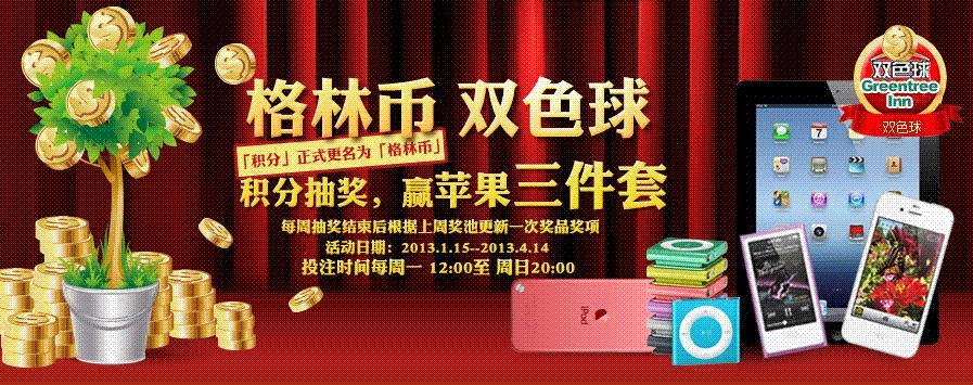 上海2013年1月24日電 /美通社/ -- 2013年1月15日至2013年4月14日,格林豪泰酒店管理集團(tuán)全新推出“格林幣 雙色球”活動,感謝廣大客人長期以來對格林豪泰的支持,也希望在新的一年里能給廣大客人帶來好運(yùn)。