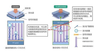 *2 Flat Panel Detector,指的是X射線圖像平板探測器,具有能夠?qū)⑼高^被拍物體照射的X射線能量轉(zhuǎn)換為以X射線穿透圖像重新成像的電信號的功能,出于診斷需要,擁有能夠充分覆蓋人體面積的平面。X射線一旦轉(zhuǎn)換為光信號后,就有兩種轉(zhuǎn)換類型,分別是:轉(zhuǎn)換為電信號的間接轉(zhuǎn)換型和將X射線直接轉(zhuǎn)換為電信號的直接轉(zhuǎn)換型。