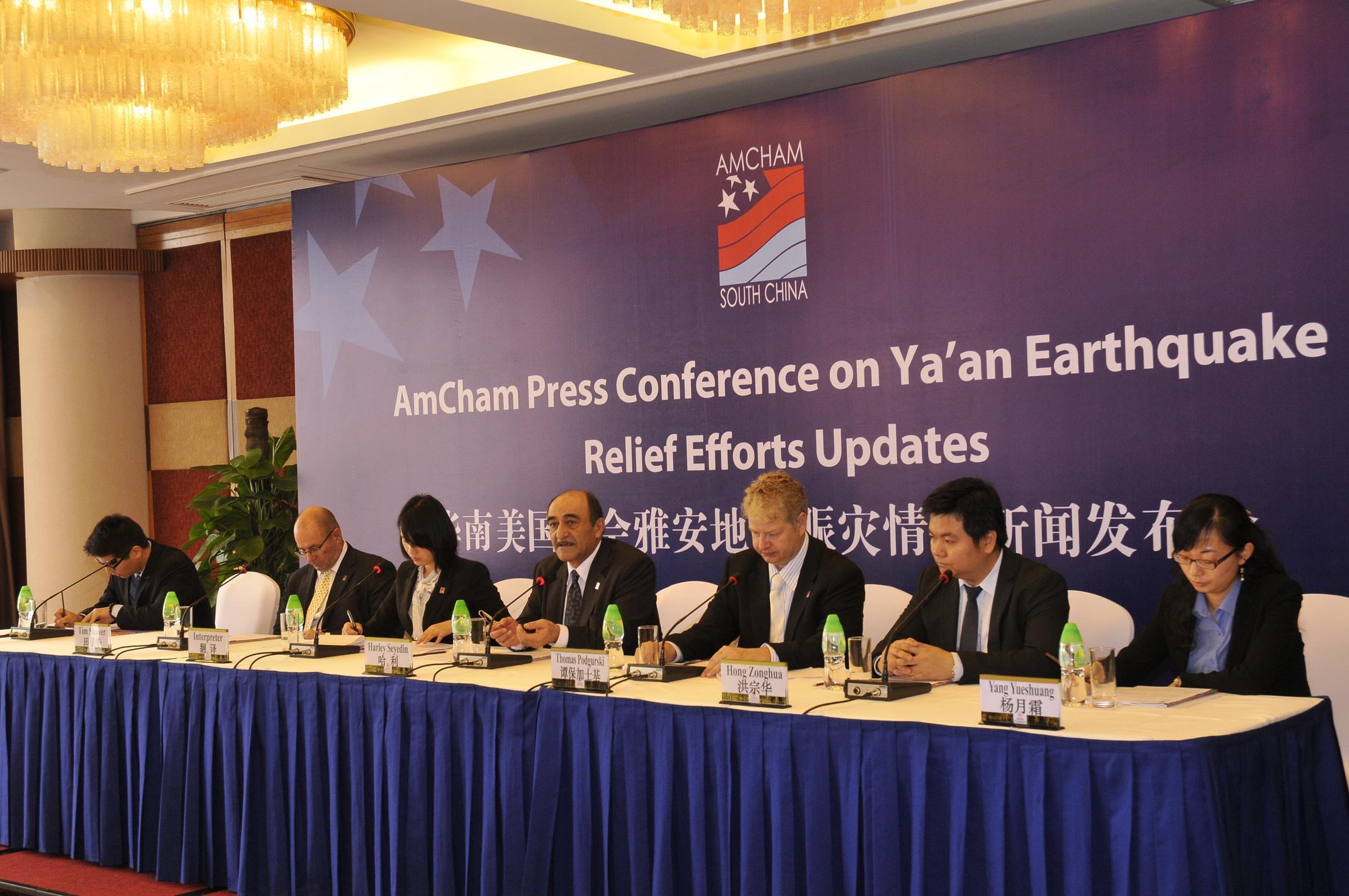 廣州2013年4月24日電 /美通社/ -- 今天(24日)上午,華南美國商會(huì)在廣州花園酒店舉行了雅安地震賑災(zāi)情況新聞發(fā)布會(huì),美商會(huì)哈利·賽亞丁會(huì)長及理事會(huì)成員、瑪氏-箭牌糖果(中國)有限公司代表、玖龍紙業(yè)(控股)有限公司代表、比亞迪股份有限公司代表出席了該發(fā)布會(huì)。以下是華南美國商會(huì)哈利會(huì)長致媒體的公開信。