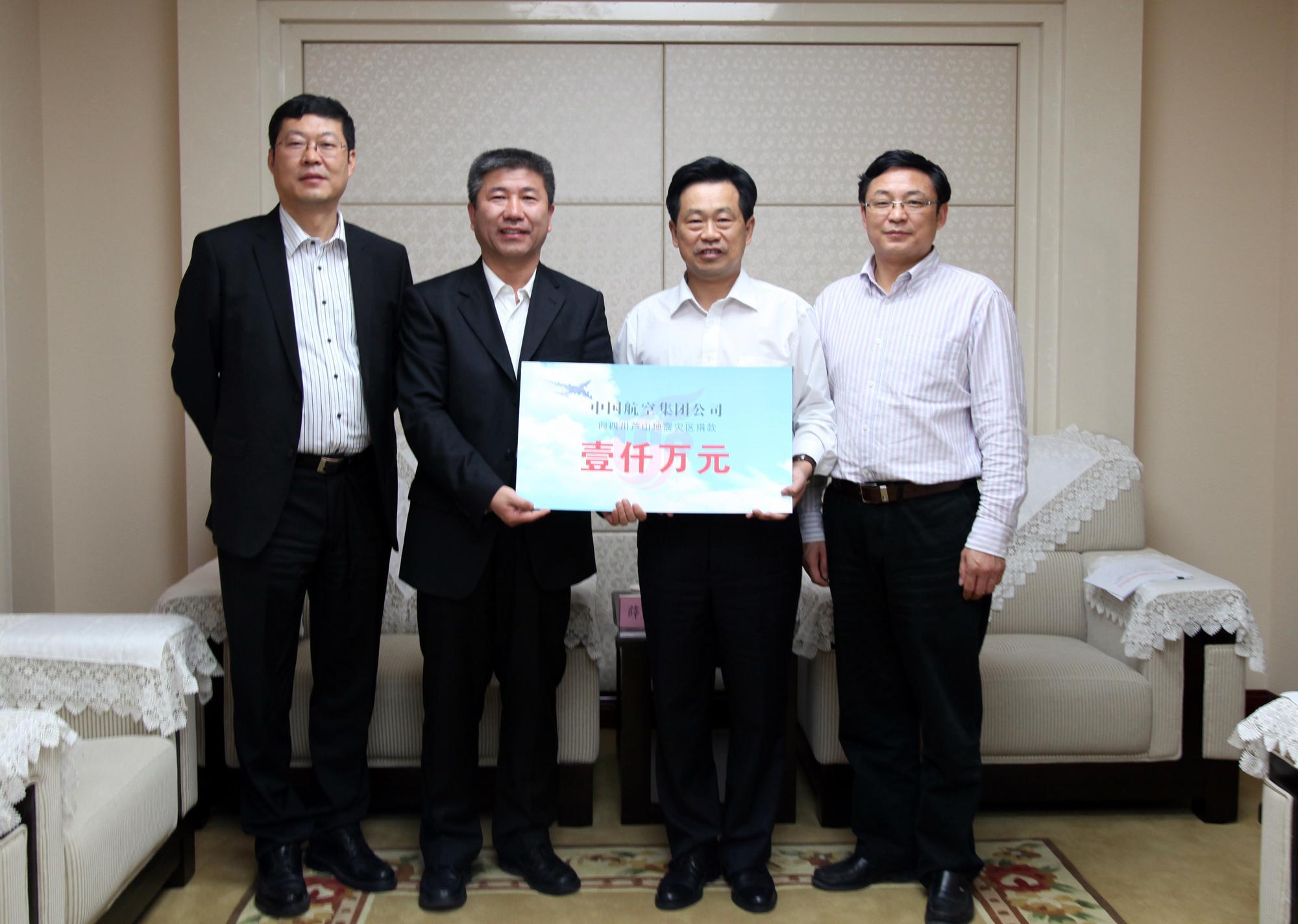 北京2013年4月27日電 /美通社/ -- 4月25日,受集團(tuán)黨組的委托,集團(tuán)工會(huì)主席薛亞松一行來(lái)到四川省人民政府,代表中航集團(tuán)7萬(wàn)干部職工向蘆山地震災(zāi)區(qū)捐款1000萬(wàn)元人民幣。四川省人民政府副秘書(shū)長(zhǎng)蔡競(jìng)代表省政府接受了捐款,并對(duì)中航集團(tuán)和國(guó)航表示感謝,承諾將把善款用到最需要的地方。集團(tuán)黨組辦公室副主任匡洪杰和國(guó)航西南分公司總經(jīng)理劉鐵祥、四川省政府應(yīng)急辦副主任駱西寧參加了捐贈(zèng)儀式。