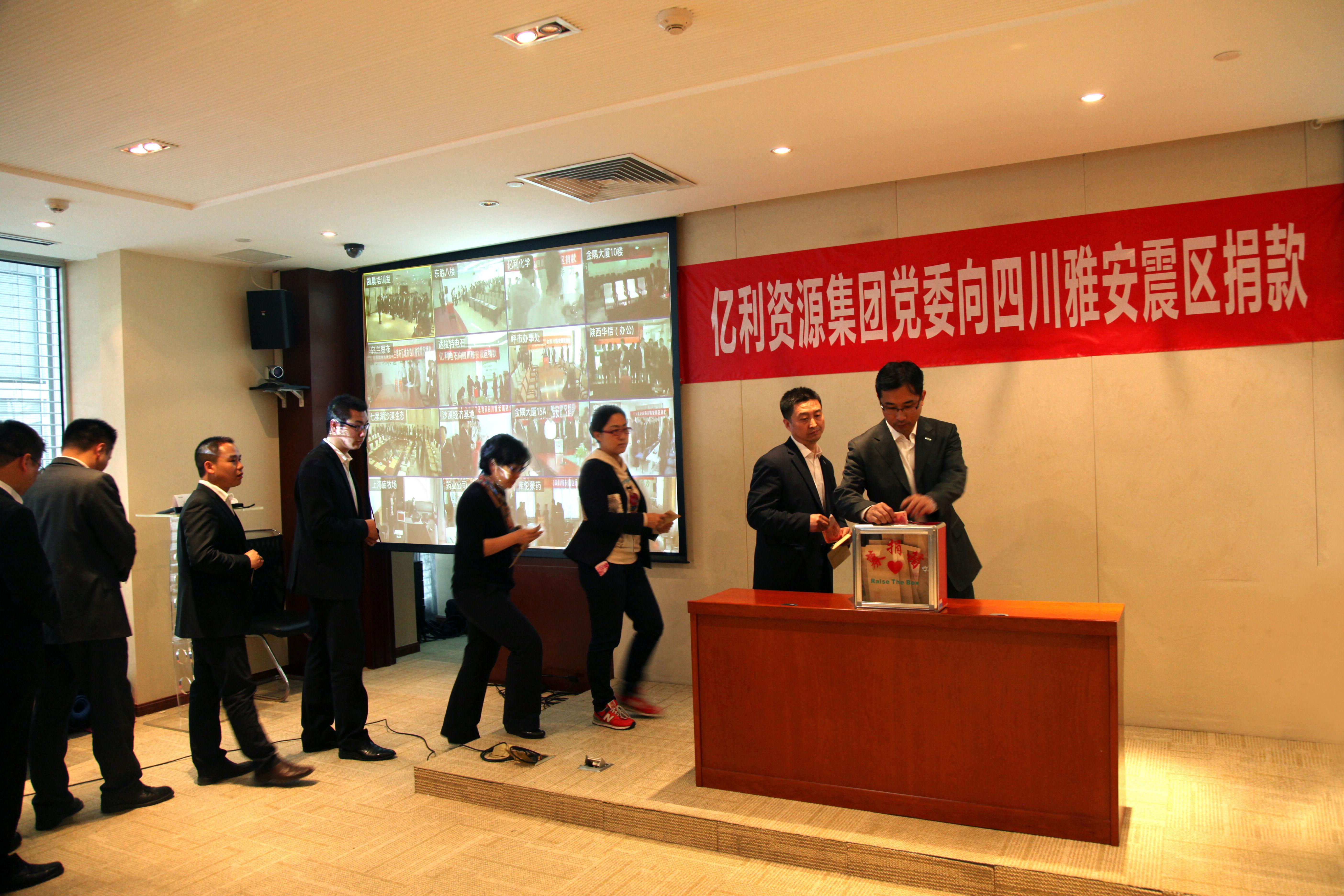 北京2013年4月28日電 /美通社/ -- 4月27日,四川省雅安蘆山發(fā)生7.0級地震后的第七天,億利資源集團黨委組織億利公益基金會、公司全體黨員干部和職工舉行向雅安地震災區(qū)捐款活動。