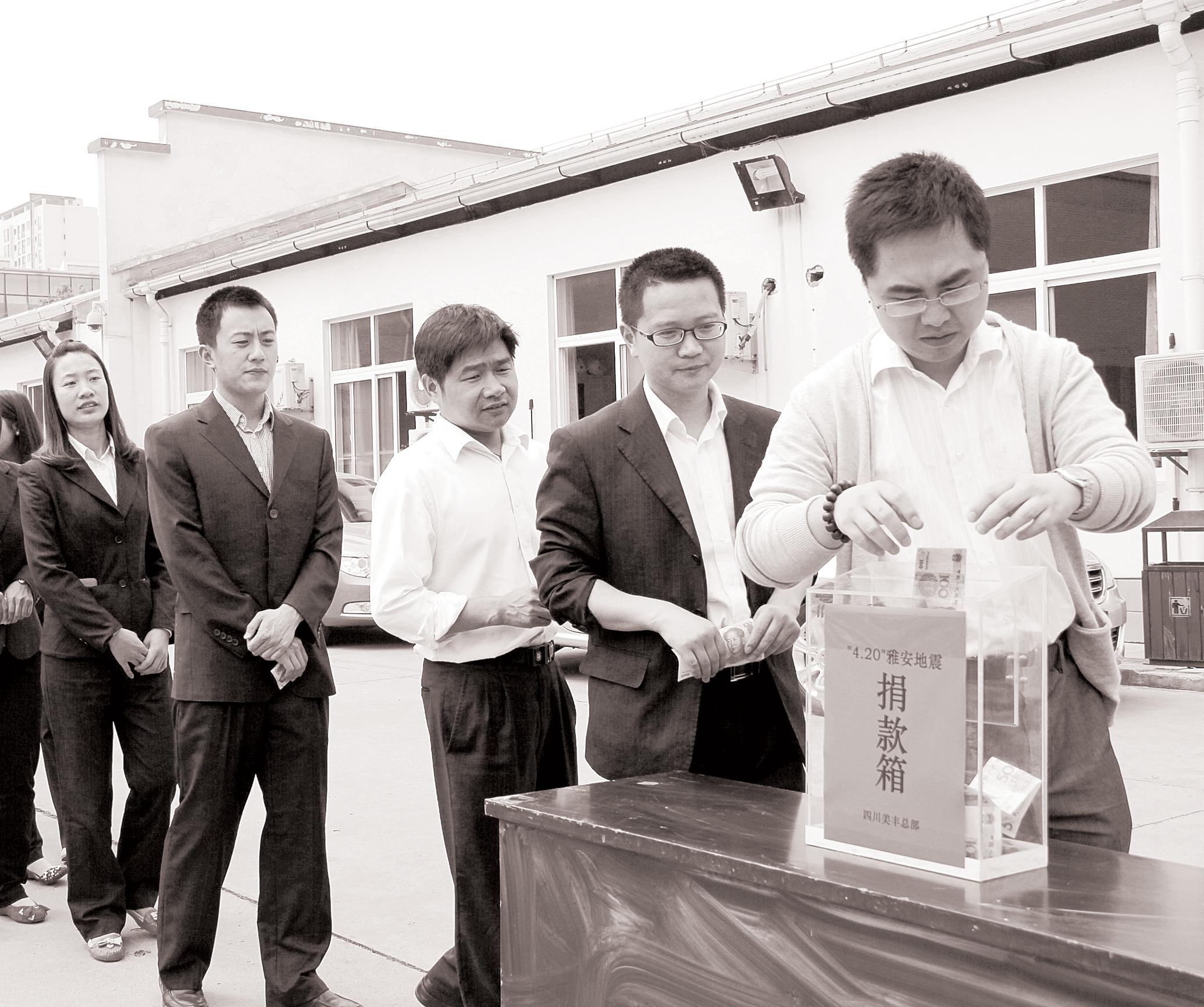 德陽(yáng)2013年4月28電 /美通社/ -- 一方有難,八方支援。4月20日,四川雅安市蘆山縣發(fā)生7.0級(jí)地震。地震災(zāi)情牽動(dòng)美豐人的心。從4月22日開(kāi)始,公司向各單位發(fā)出倡議,組織捐款活動(dòng)。干部職工自發(fā)加入到活動(dòng)中,將一筆筆數(shù)額不等的捐款投入到捐款箱中,通過(guò)自己的實(shí)際行動(dòng),為災(zāi)區(qū)的救援工作貢獻(xiàn)自己的綿薄之力。截至4月26日,公司捐款總額為143636.5元,已經(jīng)通過(guò)蘆山縣民政局直接捐往災(zāi)區(qū)。