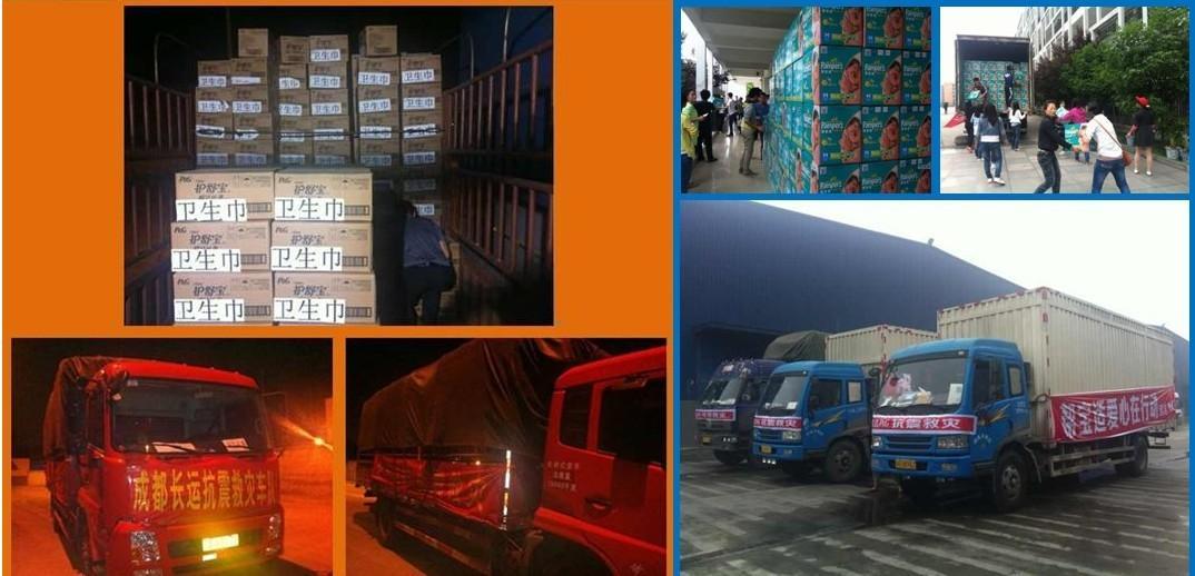 寶潔旗下品牌護舒寶,幫寶適,汰漬,金霸王及舒膚佳均在地震發(fā)生當(dāng)天就緊急行動起來,調(diào)配馳援災(zāi)區(qū)急需的衛(wèi)生巾,紙尿褲,電池,香皂,洗衣粉等產(chǎn)品價值超過355萬元。在幾家公益組織包括中國婦女發(fā)展基金會、四川省婦聯(lián)、四川民政廳、中國慈善總會、雅安慈善總會、中國兒童發(fā)展基金會和壹基金的鼎力支持和協(xié)同作業(yè)下,10萬包護舒寶,50萬片幫寶適,4000箱汰漬,20萬粒金霸王電池和10多萬塊舒膚佳除菌香皂已經(jīng)陸續(xù)運抵災(zāi)區(qū)。