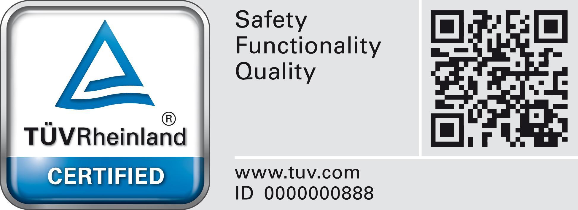 全新測(cè)試標(biāo)識(shí)的設(shè)計(jì)是由三個(gè)清楚的元素所組成。該標(biāo)識(shí)左側(cè)是一個(gè)非常與眾不同的 app 圖示,中間則標(biāo)出測(cè)試內(nèi)容,例如「質(zhì)量」或「安全性」 -- 這些關(guān)鍵詞帶有說明性質(zhì)并且與該項(xiàng)檢測(cè)標(biāo)準(zhǔn)相關(guān)。全新測(cè)試標(biāo)識(shí)右側(cè)則會(huì)有一個(gè)QR碼,讓使用者能夠通過智能型手機(jī)進(jìn)行掃描,然后直接鏈接到德國(guó)萊茵TUV的數(shù)據(jù)庫。