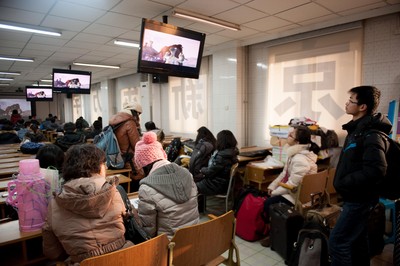一位略上年紀(jì)的阿姨正熟練地指揮著一群年紀(jì)相仿的孩子拿行李排隊(duì)?!拔覀儚暮邶埥R齊哈爾過來的,一共12個(gè)孩子。這是我外孫女,其它都是她同學(xué),中考完了約著來新東方學(xué)習(xí)。我們坐了16個(gè)小時(shí)的火車過來,有個(gè)孩子沒買到票,補(bǔ)了軟臥過來的?!睆埌⒁绦χ榻B。作為一名退休的幼兒園教師,她將孩子們管理得井井有條。